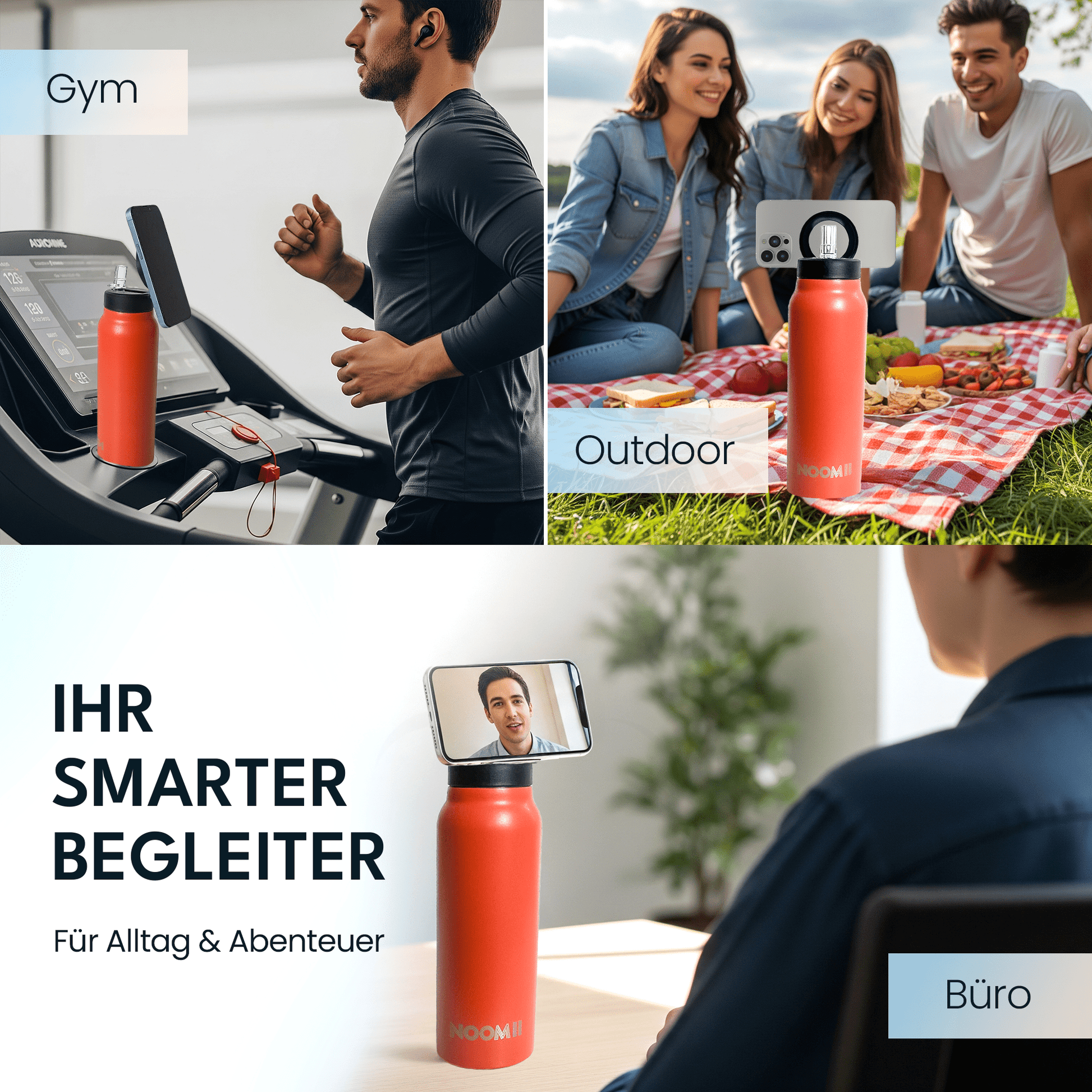 NooMii Edelstahl-Trinkflasche 800ml – Magnetdeckel & Handyhalter