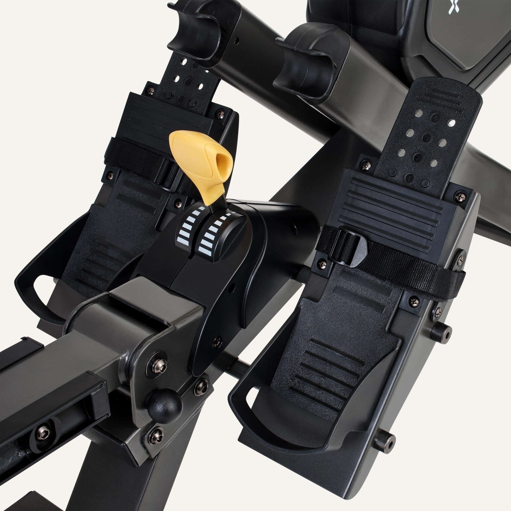 - Große und rutschfeste Trittfläche mit verstellbaren Sicherheitsriemen